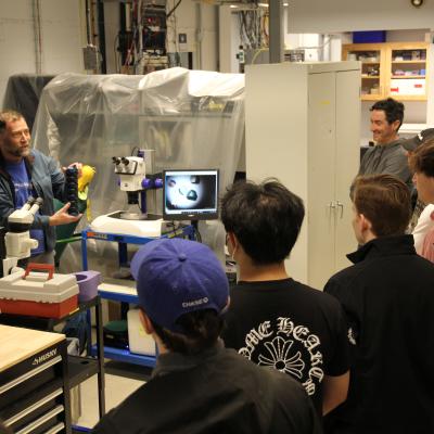 Cornell students studying various fields of biological sciences came to CHESS to see this first-hand with their instructor, Kevin Siegenthaler, to learn more about the facility’s relevance to PyMOL. They went on an in depth tour led by Rick Ryan and David Schuller down into the underground storage ring, the sector 7 biological beamlines, and the Wilson Laboratory scientific offices. This rare opportunity allowed the students to see the facility infrastructure that is essential in generating a 3D molecular model and to appreciate the years of data collection and analysis that this process requires.